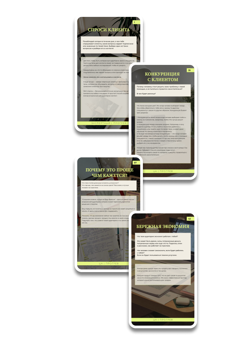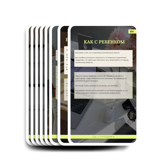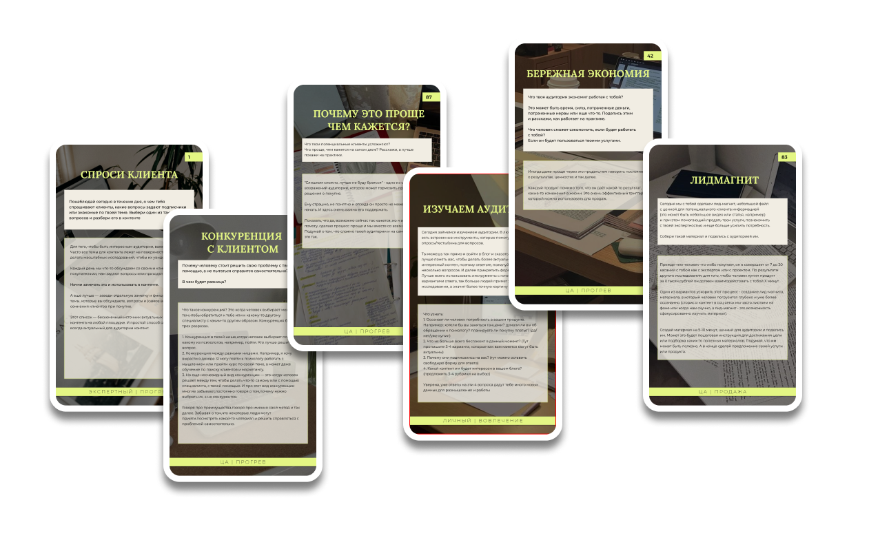 Каждая карта - самостоятельная тема для контента на день, которая помогает выстроить продажи, сделать блог интересным для аудитории и привлечь внимание клиентов.
